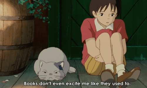 Throughout Whisper of the Heart, people including teachers, family, and friends remind the protagonist, Shizuku, that she needs to begin preparing for high school and ace her exams. She ignores them and spends most of her time with friends or books instead of studying. More issues like a friend confessing to her, and her feeling directionless appear as graduation looms closer. Her sense of listlessness is shown as she doesn’t even like reading as much as she used to: