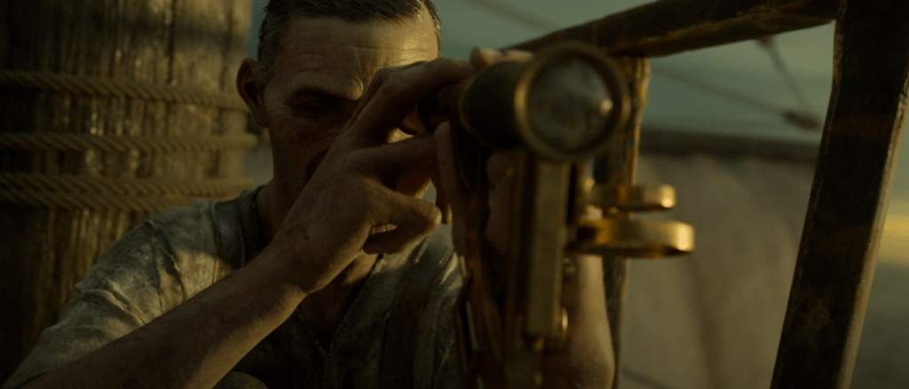 The ending does justice to the rest of the episode as the action ramps up and culminates in a spectacular and clever explosion that kills off the monstrous crab. Our last shot is of the captain rowing away and while it’s hard to fully root for him, it certainly is cathartic.