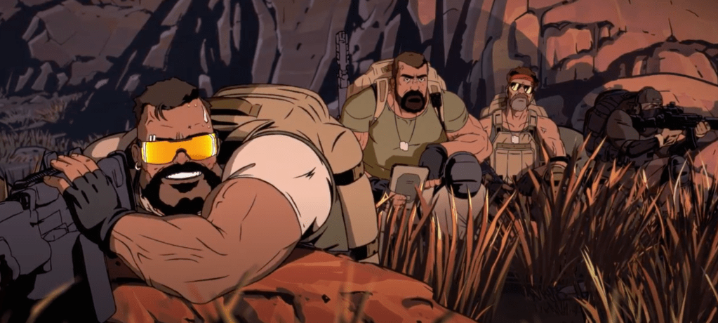 “Kill Team Kill” is an ultraviolet episode that makes fun of macho men as a group of mercenaries or soldiers takes on a robot-bear hybrid that rips them to shreds.