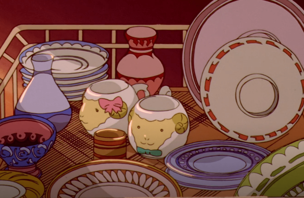 In the shot above, you can see Saionji’s bag is still there. He hasn’t made himself at home quite yet because he still holds out hope that he’ll return to the academy and regain his place there, but Wakaba’s decision to buy matching cups for them both indicates how serious she is about him and how much she wants him to stay. It’s a recipe for disaster as these two characters are clearly at odds with how invested they are in this relationship.