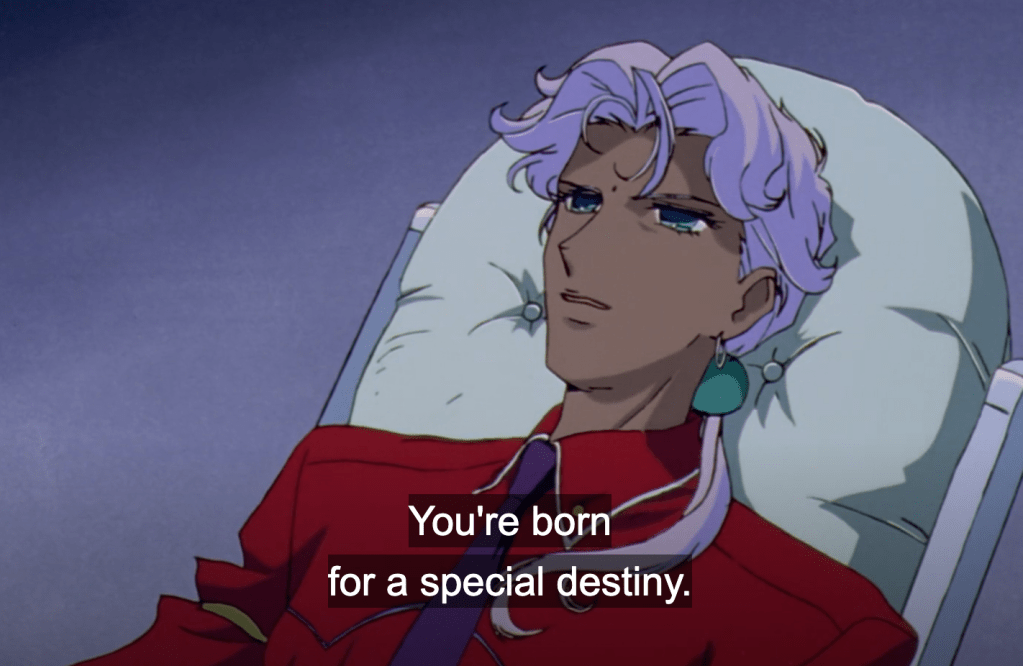 Akio’s speech places Utena on a pedestal, but it also reveals his own arrogance as he clearly believes himself to be special too. When Akio fell from grace as Dios, he still sought power in any way that he could and believed himself to be above all law, including morals, because he was the prince.
