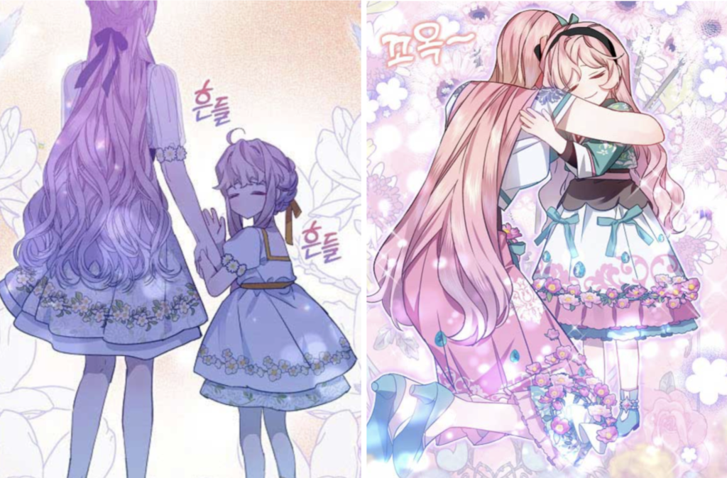 I’m a big fan of this particular costuming style and also like how it can be used to show the relationships between a child and adopting parent growing closer. For example, in I Raised A Black Dragon, we see how the baby dragon, Mu, starts to dress in a simplified, coordinated attire that matches Noa Park/Eleanora pretty early on, and sometime after that Kyle Leonard—the love interest to Noa—joins in too. Other series, like I Became The Male Lead’s Adopted Daughter also follow this use of costuming to show family units and cohesiveness between members: