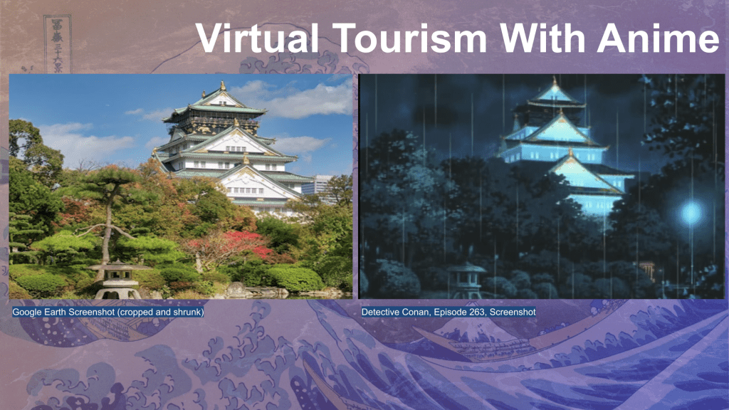 For context, this is something I’ve done on my own for a long time and something that I was, interestingly, assigned to do in one of my Japanese culture classes. It can be a fun activity for those of you at home, as well as an educational one for those of you in school or teaching. For a larger cultural context, due to the pandemic, many tourists faced travel restrictions and were unable to visit their desired destinations around the world in the last couple of years. Japan was among the countries with some of the strictest measures regarding travel, and while Japan’s tourism restrictions were lifted in October 2022, some individuals may still be wary of going abroad at this time. In this post, I will explore how to embark on a virtual tour to one of my favorite places to hear about in Japan by using anime as the inspiration and Google Maps for visual aids. The idea is that those reading this post and those that will eventually view the presentation/workshop can gain some inspiration and insight for how to become a virtual tourist in addition to enhancing your virtual journey with research techniques to add to your cultural knowledge. In this post and in my presentation, I will be using Detective Conan, also called Case Closed, to demonstrate how one might virtually tour another part of the world. With that, let’s begin!