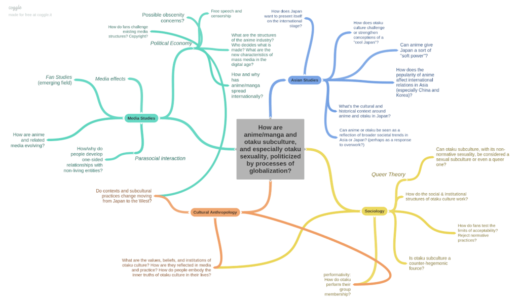 If you look at the graphic above, this ties four overlapping fields together for a singular study on otaku subculture within the anime and manga studies realm. This is not uncommon for any field of academia really, as many fields find academic overlap in other areas.