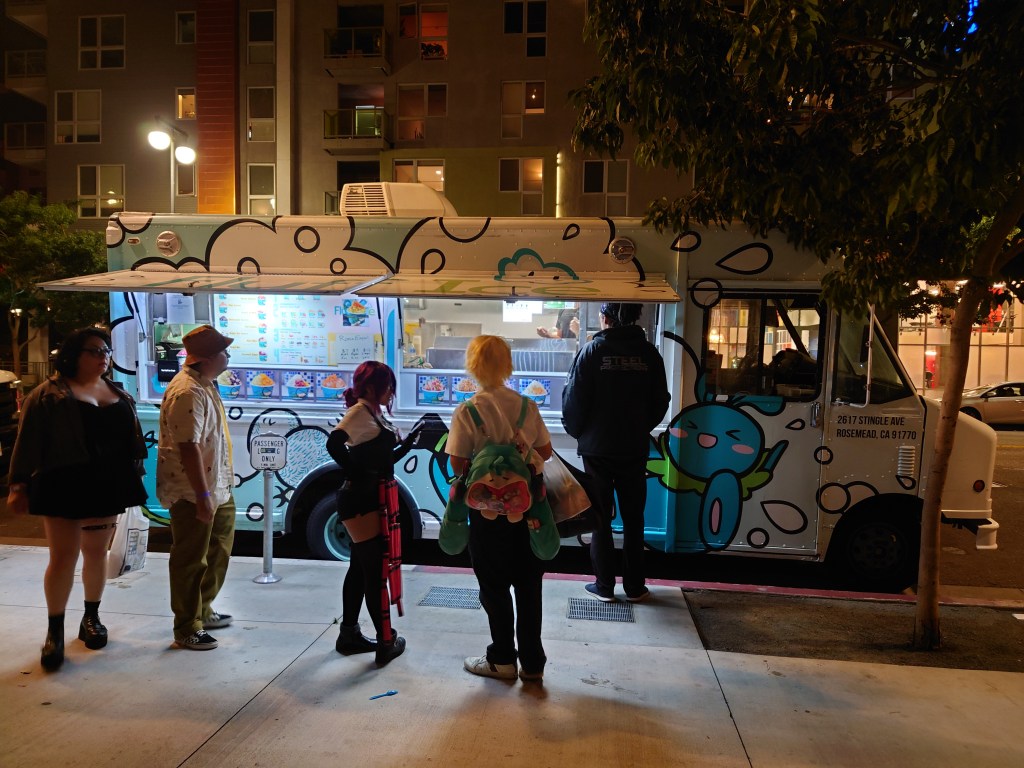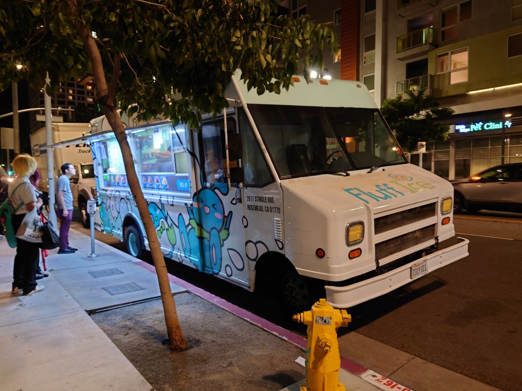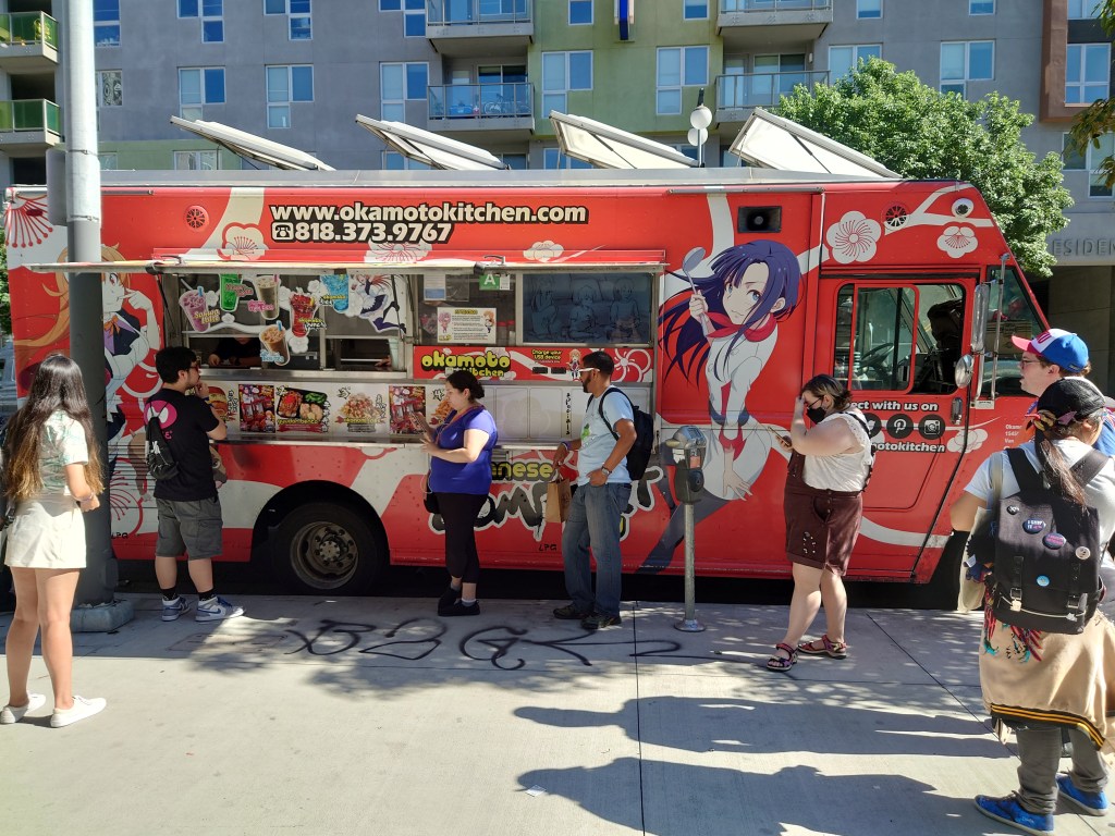 There were two food trucks for the event. Both parked on Los Angeles Street, the street outside the main entrance. The first was Okamoto Kitchen and the other was Fluff Ice.