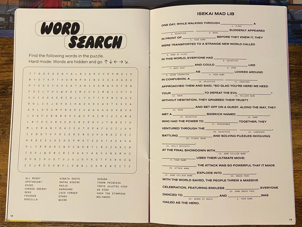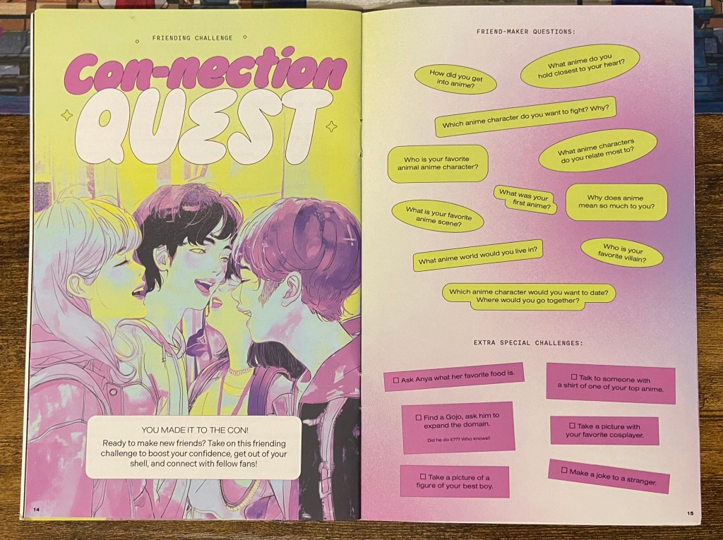 The main message of the zine too was pretty wholesome, encouraging people to connect with others at the con through a bingo activity, through some conversation starter questions, and a mad lib section. It also had some solo-activities, such as the word search.