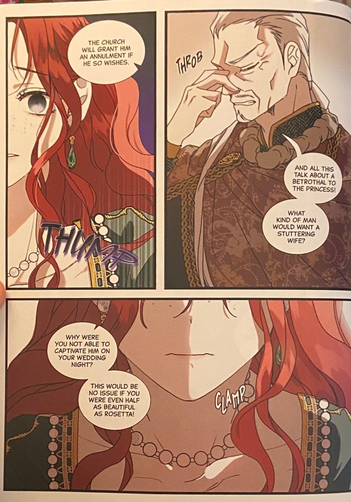 While re-reading the series in this new format you could really feel the anxiety of the main character, Lady Maximilian, is married off to the war hero she barely knows, Sir Riftan, and moves across the country to a new territory and home. You also get to see, thanks to this new layout, how misunderstandings between the new couple really hang in the air as she copes with the trauma of her childhood and learns to communicate with her not-so clear on communication husband.