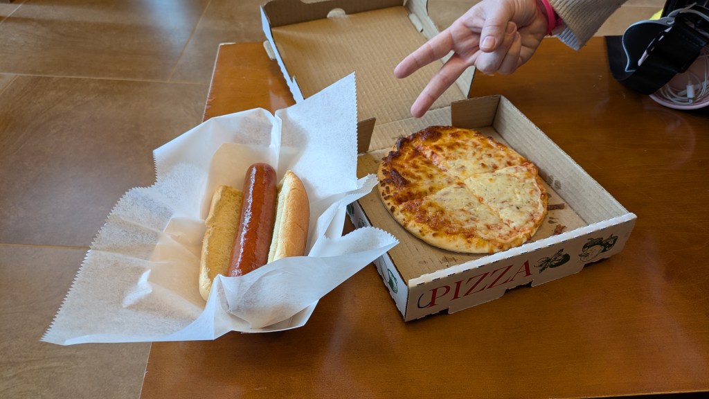 With the winds knocked out of my sails from lacking panels, lackluster shopping options, and little else to do—I figured it was about time for lunch. The options were nachos, personal pizzas, and hot dogs. The nachos looked more like a snack and didn’t appeal to me at all. So the group of us got a small pizza and a hot dog. The pizza was sufficient, but nothing to write home about. As for the hot dog, it was good, but can you really mess up a hot dog outside of possibly overcooking it? Moreover, it was expensive. It’s your only option inside the convention, as you’re not allowed to bring outside food into the convention center.