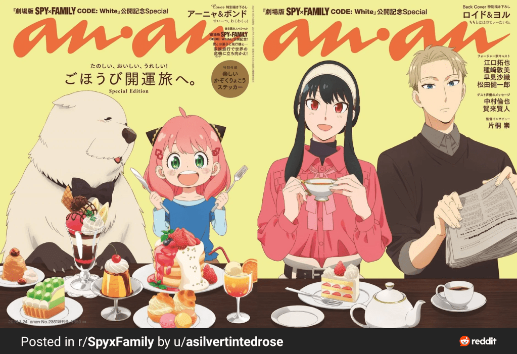 In the time since the movie’s release, there have been a multitude of accompanying books and magazine covers, some of which I’ve included in pictures below. For a more complete compendium of all the collaborations, merch, books, and magazines related to the movie, the Spy x Family Wiki has a CODE: White Gallery, too!